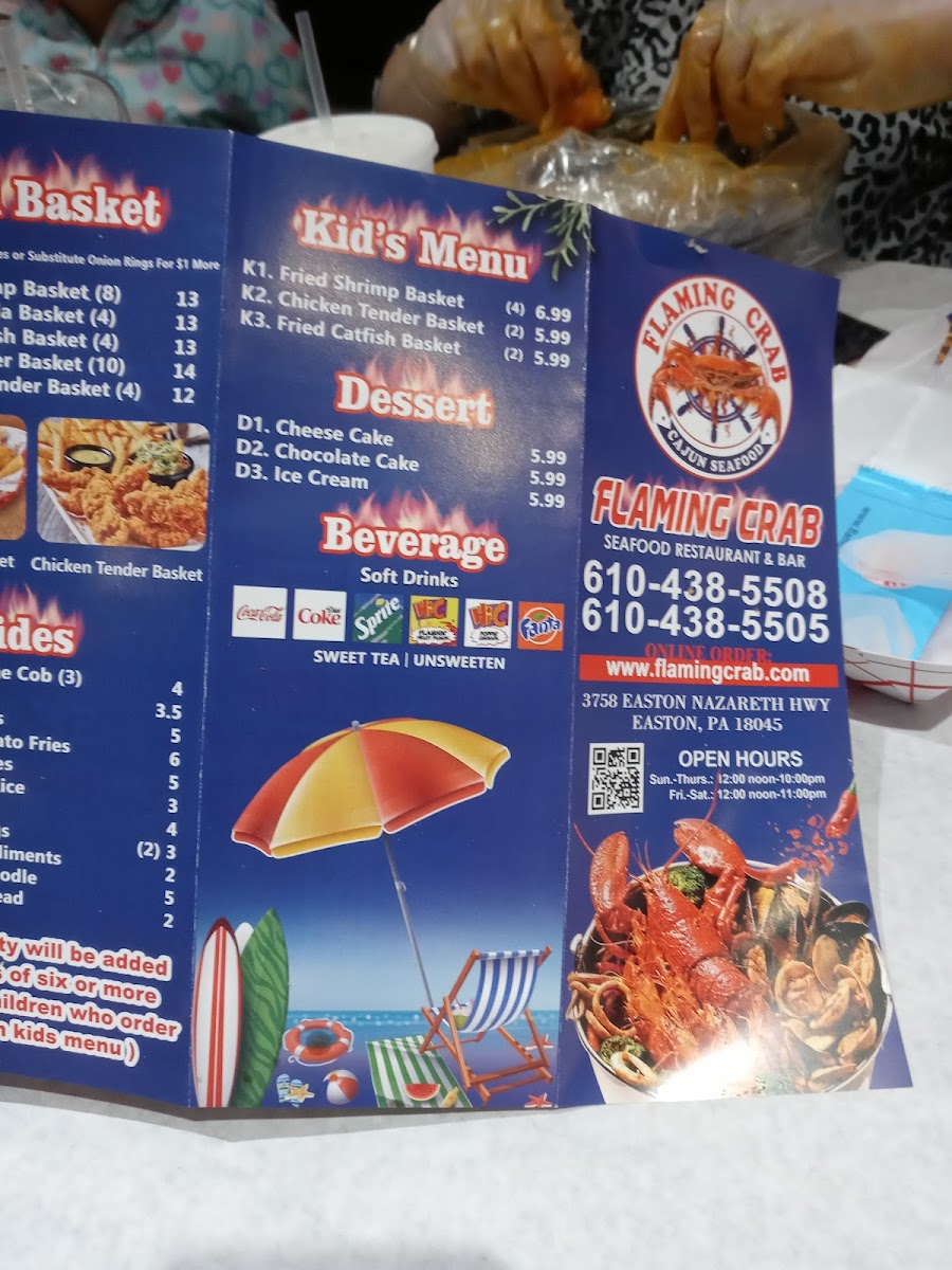 Welcome to Flaming Crab Cajun Seafood, a gem nestled in Easton, PA, where vibrant flavors meet a fun atmosphere. Their diverse menu spotlights mouthwatering Cajun seafood, offering options like 1 lb. headless shrimp and 1/2 lb. snow crab cooked to perfection in a rich Cajun sauce. Don't miss their delectable Pasta dishes, such as Seafood Marinara or Shrimp Linguine Alfredo, ideal for pasta lovers.